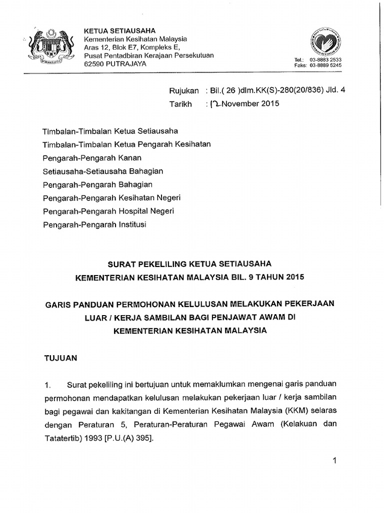 Surat Pekeliling Ksu Bil 9 2015 Pekerjaan Luar Pdf